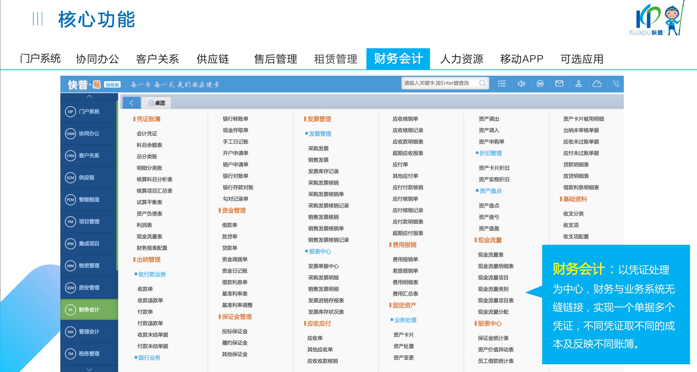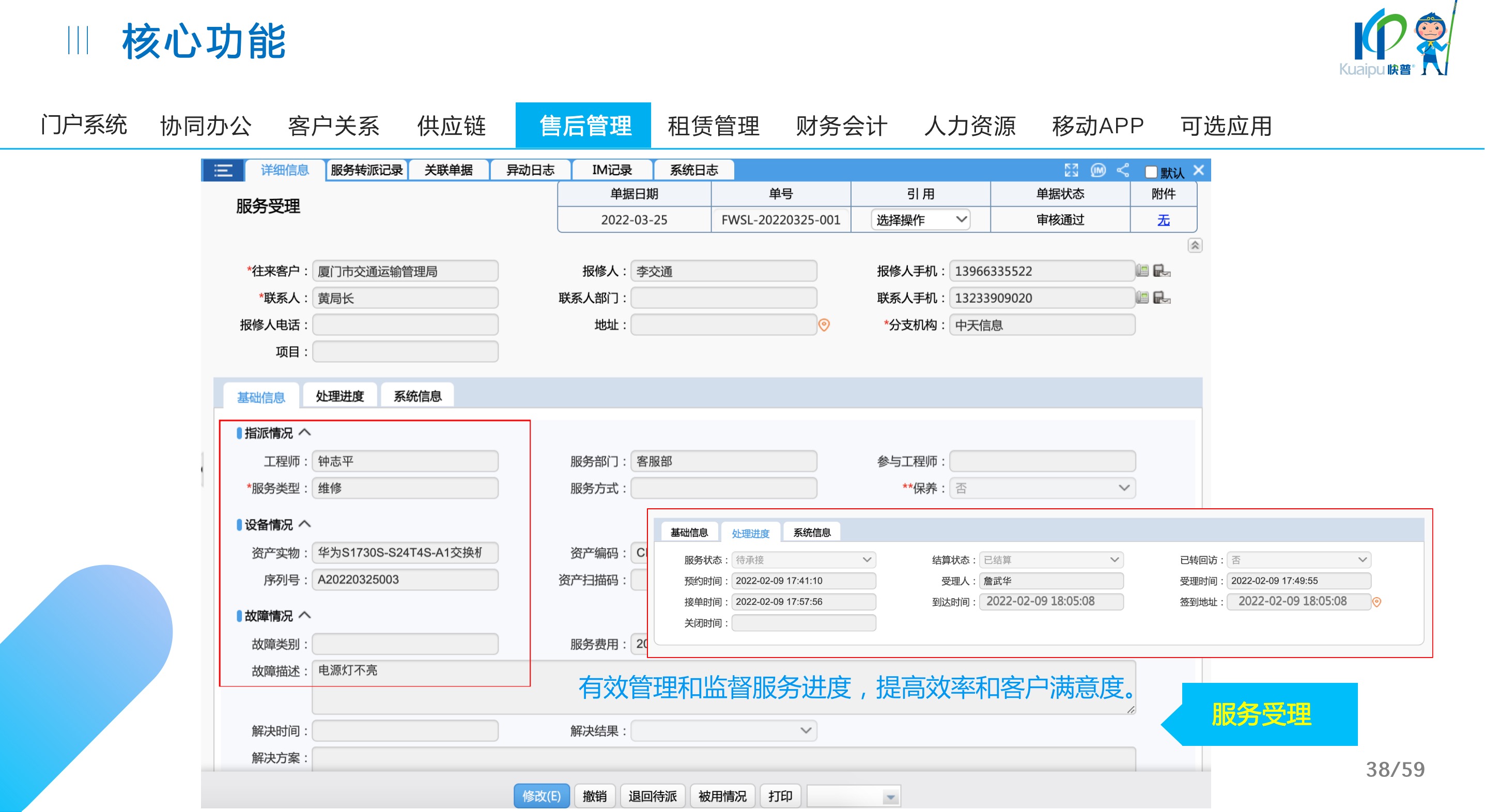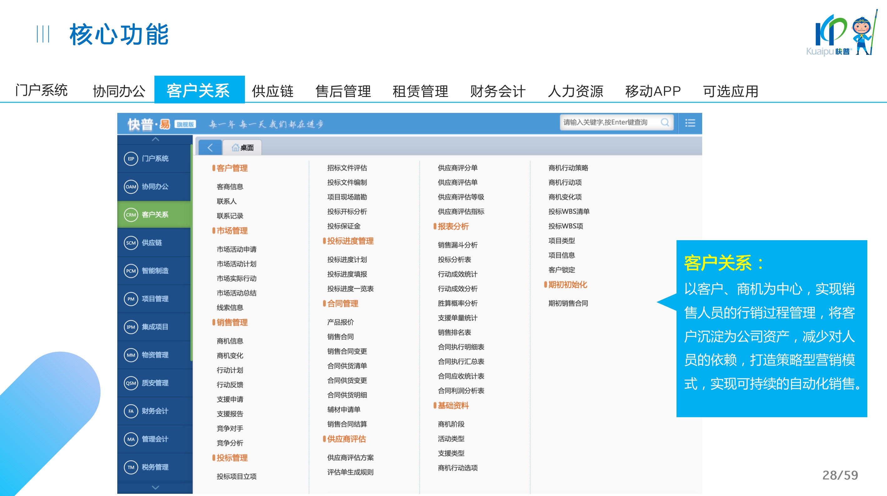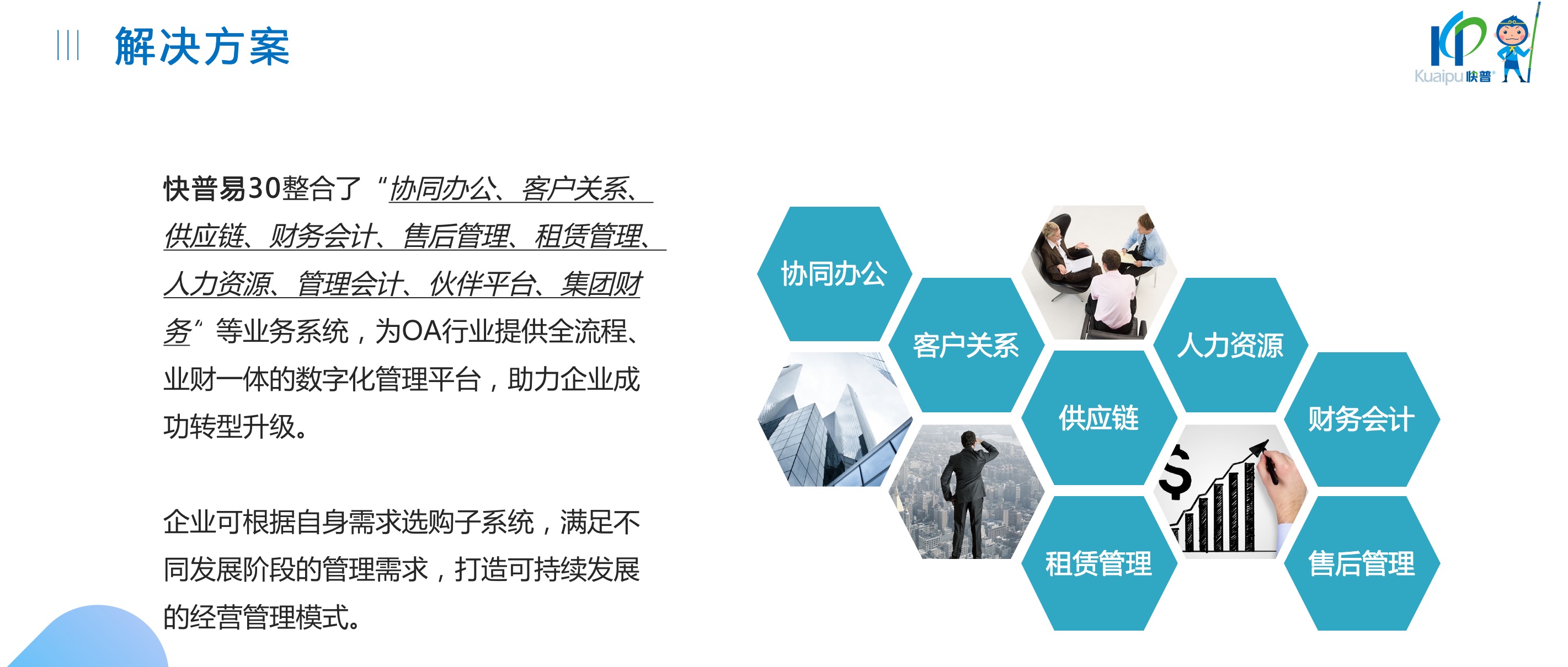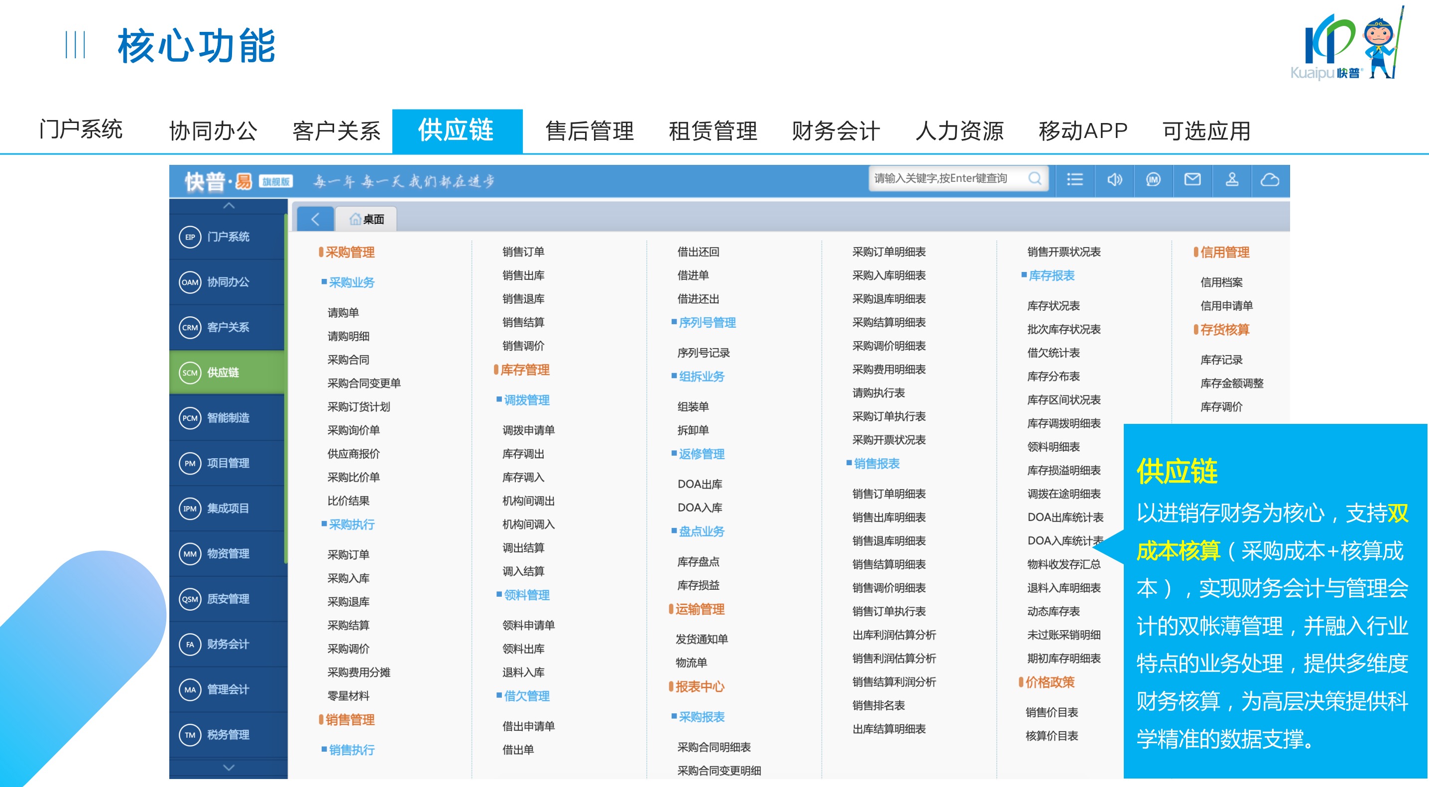 快普易30基于快普近20年在全國(guó)上萬(wàn)家OA企業(yè)的實(shí)施與服務(wù)經(jīng)驗(yàn),融合了行業(yè)成功的管理智慧,以“客戶(hù)+機(jī)器”為中心提供數(shù)字化轉(zhuǎn)型解決方案,全面解決銷(xiāo)售、服務(wù)、租賃等多種業(yè)務(wù)模式的管理需求,以及企業(yè)經(jīng)營(yíng)核算分析。