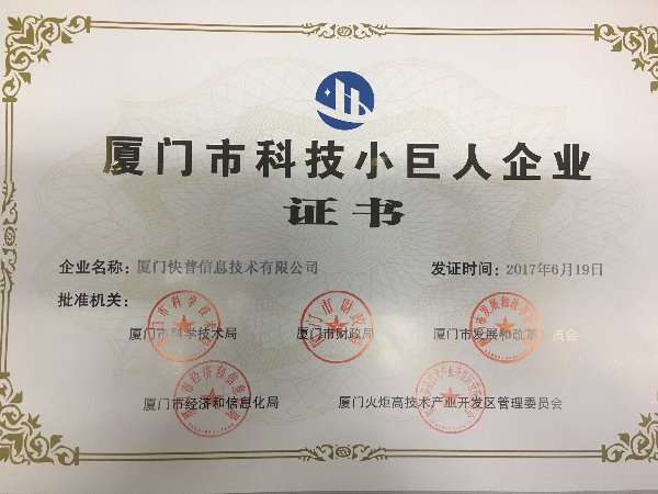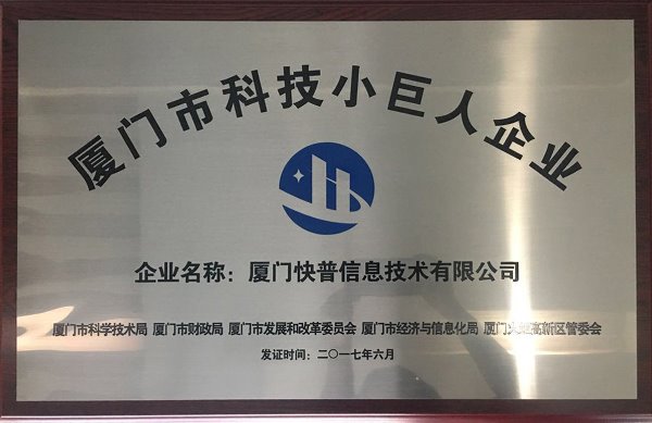 近日,福建省科技廳公布2017年科技小巨人企業(yè)名單,廈門快普信息技術(shù)有限公司憑借自身的卓越實(shí)力,在激烈競爭中脫穎而出,被授予2017年“廈門市科技小巨人企業(yè)“榮譽(yù)稱號(hào)。