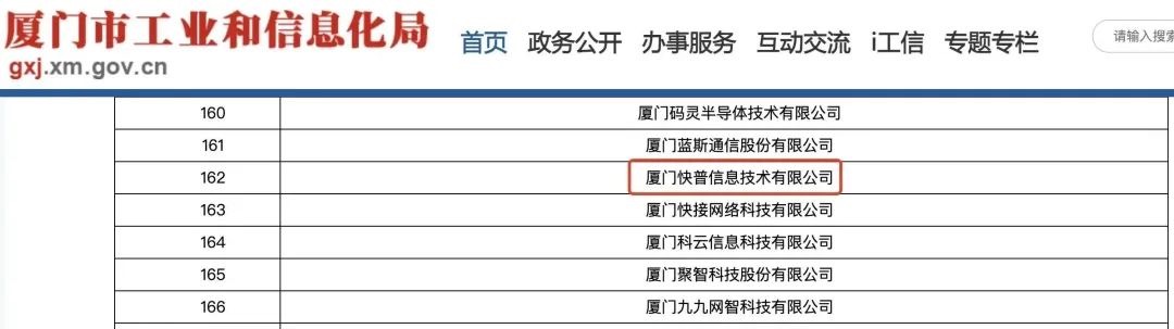 4月19日,廈門市工業(yè)和信息化局正式發(fā)布《2023年專精特新中小企業(yè)第一批認定名單》,經(jīng)專家評審與綜合評估,快普成功獲得廈門市“專精特新”中小企業(yè)認定。